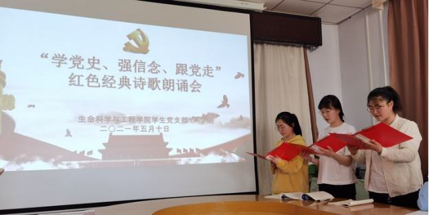 支部党员们通过饱含深情的朗诵红色主题诗歌,回顾了党的奋斗历史,讴歌了党的光辉业绩,表达了支部党员继承红色精神、坚定理想信念和爱党、爱国、爱校的真挚情感,让支部党员在红色经典和具有鲜明时代感的作品中接受教育。学生党员纷纷表示,要坚持学史力行,从党的光辉历程、光荣传统,以及宝贵的精神财富中,汲取前进力量,努力奋斗,以优异成绩向建党一百周年献礼。