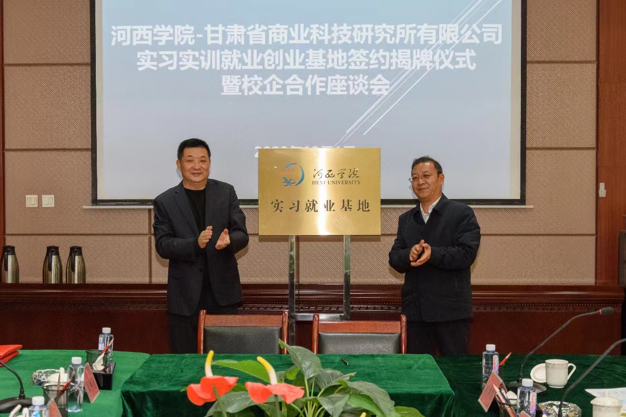 12月1日,学校与甘肃省商业科技研究所有限公司举行了基地合作签约及揭牌仪式。学校党委常委、纪委书记、监察专员殷大斌、甘肃省商业科技研究所有限公司董事长杜建泉、365英国上市官方网站负责人参加了签约及揭牌仪式。殷大斌代表学校与甘肃省商业科技研究所有限公司签订了合作协议,并为河西学院实习就业基地揭牌。