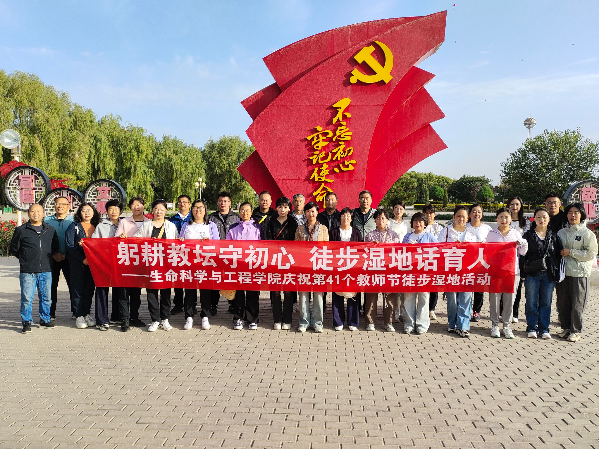 9月7日,365英国上市官方网站全体教职工齐聚润泉湖公园,以“躬耕教坛守初心,徒步湿地话育人”为主题,开展庆祝第 41 个教师节徒步湿地活动。