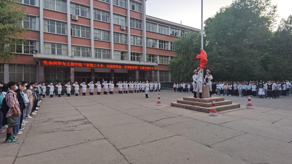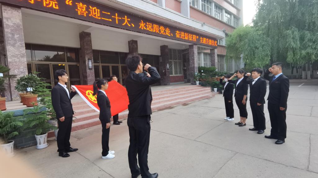 5月23日上午6:50,365英国上市官方网站在行政楼前举行“喜迎党的二十大、永远跟党走、奋进新征程”主题升旗仪式,全院师生共计400余人参加了此次升旗仪式。