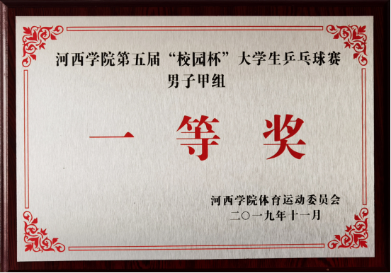河西学院第五届“校园杯”大学生乒乓球赛男子甲组一等奖